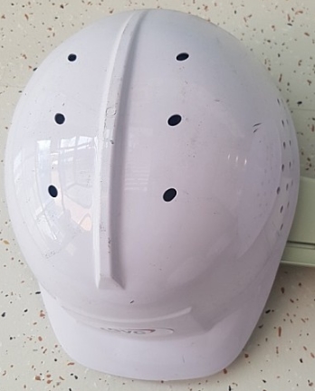 - 떨어지거나 날아오는 물체로부터 머리를 보호하기 위한 안전모입니다.